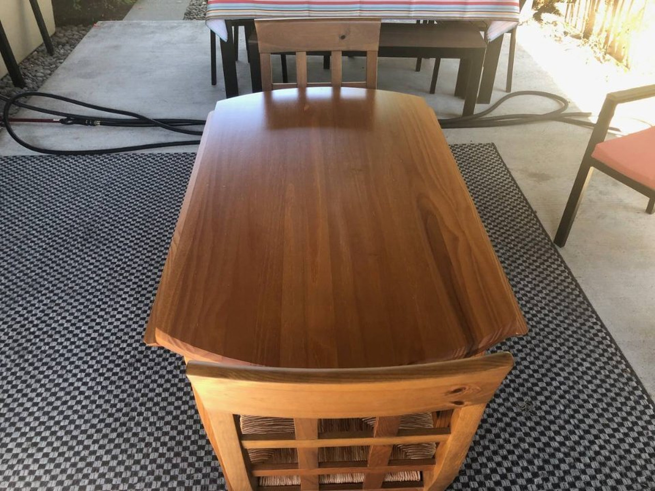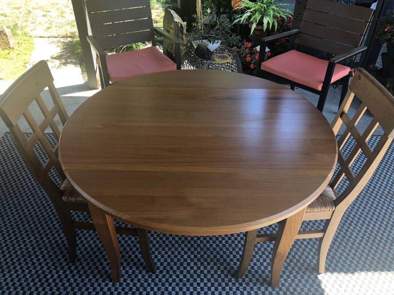 I have a small drop leaf table that measures 42" when leaves are up and about 26" with leaves dropped. Includes 2 wicker seat chairs. Great for a small kitchen or apartment. $120 cash. Contact Annell by email or phone. The number is a landline, so no texts.