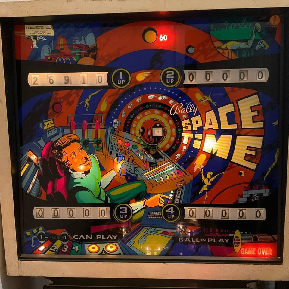 This vintage Space Time pinball machine has been lovingly restored and is in excellent working condition. It has been fully cleaned, repaired, and tested for smooth and reliable play. Perfect for collectors, game rooms, or businesses looking to offer a unique retro experience.