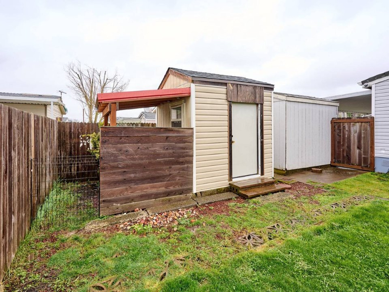 Immaculately kept home in desirable Copper Creek Estates! New paint throughout, brand new carpet, new master shower, new energy efficient windows throughout, newer roof, new dishwasher, new toilets. It feels like a new home! Covered patios with deck, carport, landscaping with raised garden beds, blue berries and room to make your own outdoor oasis. 2 outdoor buildings for your hobby and storage needs. Central AC/heat. Seller offered Home warranty with acceptable offer, you won't want to miss this one! Cute fenced in yard for your dogs. All age park, Space rent at $1,015 with access to a basketball court, community area, playground, picnic areas and RV parking. Conveniently located near schools, parks and all your shopping needs. All kitchen appliances included. This home is not only cozy but taken care of. With the new updates and the added value of a home warranty. Some might call that Peace of mind. Keizer station just down the road as well as I-5 access really make this quant community a convenient place to be in Salem. This one is completely move in ready! Offered by Karen Peters- Licensed Broker in Oregon- Sundance Manufactured Homes Division. Open House Saturday 8/2 1-3pm!