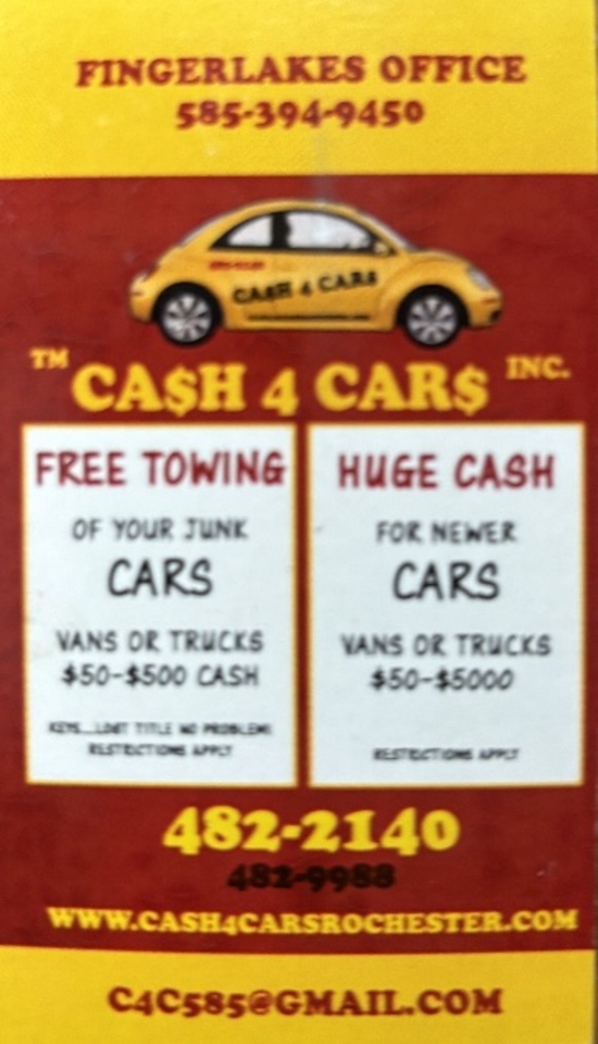 Cash for Cars Rochester is the quickest and easiest way in Upstate New York to turn your unwanted vehicle into cash – right now! We’ve been in business buying, towing away and recycling used cars, trucks, vans and SUV’s for decades.