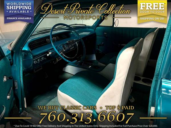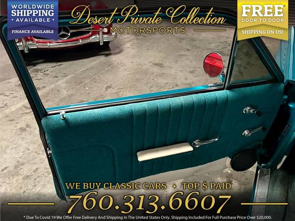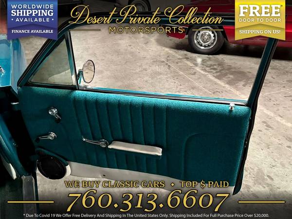 A bold teal exterior, a crisp teal-and-white interior, and Chevrolet’s legendary early-’60s engineering come together in this beautifully preserved 1963 Bel Air. With its long, streamlined body, smooth road manners, and unmistakable full-size presence, this Bel Air blends vintage charm with the durability and drivability collectors look for today. A true standout under the desert sun.
