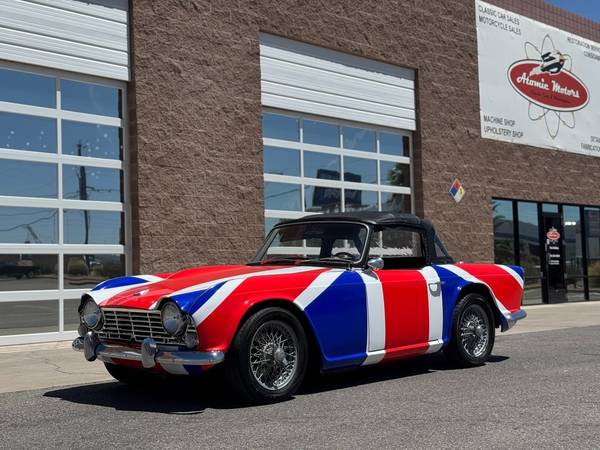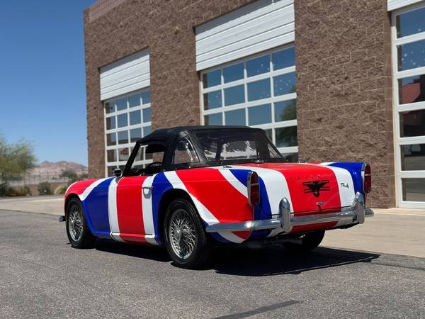 Underneath the show-stopping wrap lies a genuine 1965 Triumph TR4, a proper British sports car with classic lines, wire wheels, and the spirited performance of its 2.1L inline-4 engine. But what sets this one apart? That glorious Union Jack wrap, professionally done, and perfectly fitted. It is not just a nod to its heritage, it is a rolling celebration of it.