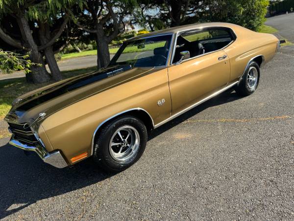 Get ready to own the streets with this legendary 1970 Chevrolet Chevelle Super Sport engine built 3k miles ago 454 with spec's build sheet. Mated to a task ready Muncie 4 speed Transmission with M22 Internals. Dressed to impress in a stunning Autumn Gold Metallic exterior with bold Tuxedo black under clear stripes gracing a laser straight body. Complemented by a Black Non Smokers correct OEM materials interior.