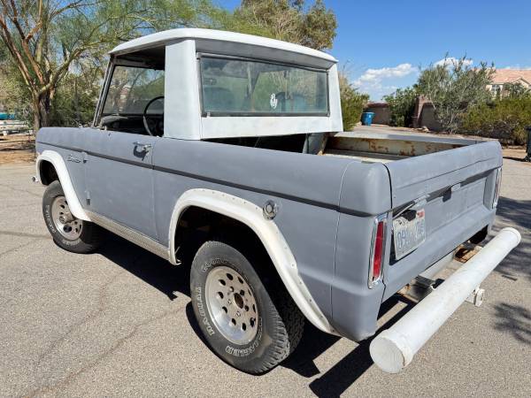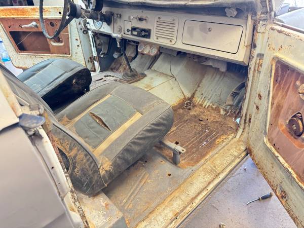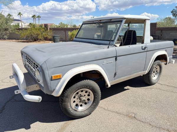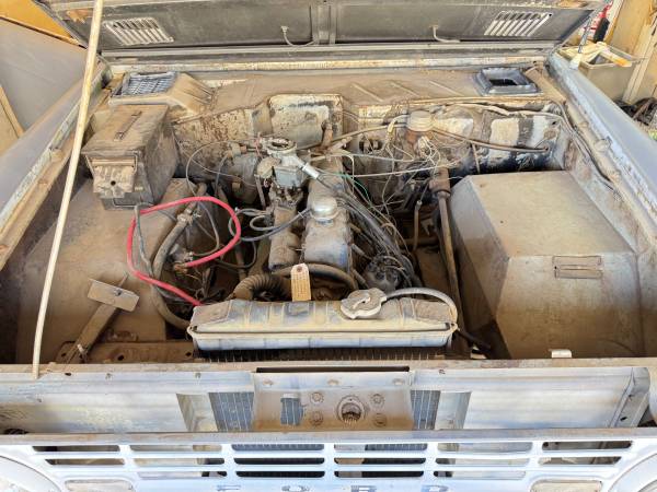 Pretty solid rust free Bronco except Front Floor Pans. original 170 Engine upgraded to a 200. Engine runs and seems to be in good shape, but it will need fuel and brake system to be gone through to be drivable. Clean Title. Have video of engine running. Asking $17,999 OBO more flexible on the price without the rare half cab roof. Might consider keeping engine. I do have a full roof that is not perfect I am willing to swap out as well.