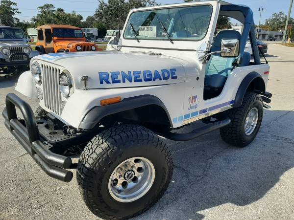 1980 Jeep CJ-5 Classic retro styling all the way! Gorgeous Jeep with a Chevy V6 engine conversion & 5 speed manual transmission! Tilt steering wheel, 4 wheel disc conversion, fiberglass body upgrade, newly upholstered seats, rollbar pads and bikini top! This Jeep takes off like a rocket! Super fun to drive! VIDEO LINK https://www.youtube.com/watch?v=Po6MPuaK5Mc ... WE CAN ALSO BUILD A CJ-7 JUST LIKE THIS! We also custom build CLASSIC jeeps the way YOU want them! CALL US UP AND LETS DISCUSS YOUR NEXT JEEP 407-739-1699 or (844)-EZJEEPS!.... 321,689,9790. . . . BRING US YOUR TRADE IN - NATIONWIDE DELIVERY AVAILABLE TO YOUR DRIVEWAY! ................................. .............WE WILL REFURBISH YOUR CLASSIC JEEP IF YOU HAVE ONE!!! .. EZCustom4x4.com.........