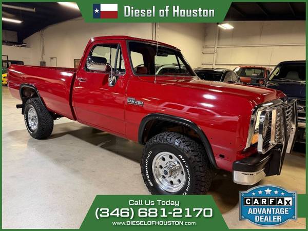 1992 DODGE RAM 250 LE 4X4 (REGULAR CAB) 2-OWNERS - NORTH DAKOTA TRUCK 100% CLEAN TITLE & CARFAX REPORT 5.9L CUMMINS 12V TURBO DIESEL 5-SPEED MANUAL TRANSMISSION BRAND NEW 285s BFG KO3 A/T TIRES BRAND NEW 16 AMERICAN RACING WHEELS NEW OIL & FILTER SERVICE NEW FUEL FILTER SERVICE NEW BRAKE BOOSTER NEW BRAKE MASTER CYLINDER NEW A/C SERVICE WE DO OFFER NATIONWIDE SHIPPING SERVICE TO YOUR DOOR. WE DO HAVE FINANCING SOURCE FOR OLDER MODEL TRUCKS ONLY WITH APPROVED CREDIT. WE ARE LOCATED AT 3422 BACOR RD HOUSTON TX 77084 FOR MORE INFORMATION, PLEASE CALL 713-463-8000