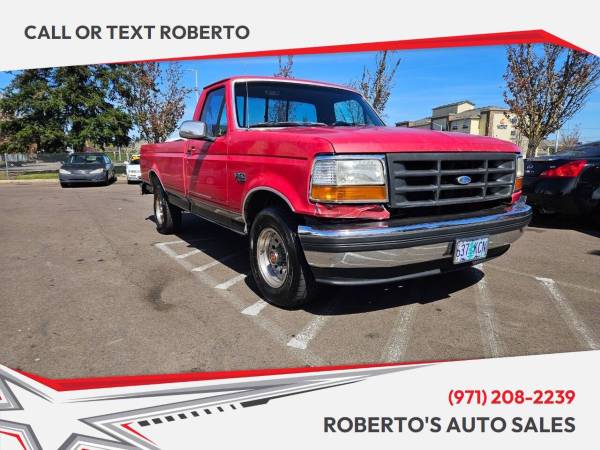 Roberto's Auto Sales have more than 25 yrs experience, serving the community with the vehicle's needs, we have EZ financing, all inventory has a clean title, we have car fax available, call or text me at 971-208-2239 for any questions. Introducing the 1993 Ford F-150 XLT, the ultimate truck for all your needs! This rugged and powerful vehicle is perfect for both work and play, with its spacious interior and impressive towing capacity. The classic design of the 1993 F-150 XLT exudes confidence and reliability, making it a top choice for truck enthusiasts. Equipped with a strong V8 engine, this truck can handle even the toughest jobs with ease. Plus, its XLT trim level adds a touch of luxury and comfort to your driving experience. So why wait? Come and test drive the 1993 Ford F-150 XLT today and experience the true meaning of a reliable and versatile truck. Don't miss this opportunity to own a piece of Ford's history. Hurry, before it's gone!