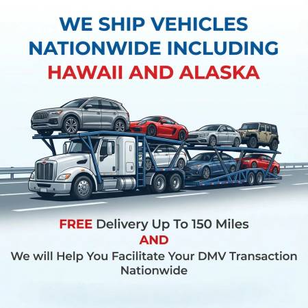 WE ARE DEDICATED TO PROVIDING THE ULTIMATE AUTOMOBILE BUYING EXPERIENCE NATIONWIDE INCLUDING TO ALASKA AND HAWAII. OUR DEALERSHIP IS YOUR #1 SOURCE FOR BUYING QUALITY PRE-OWNED VEHICLES DELIVERED THROUGH ONE OF OUR PREFERRED TRANSPORTERS RIGHT TO YOUR FRONT DOOR.