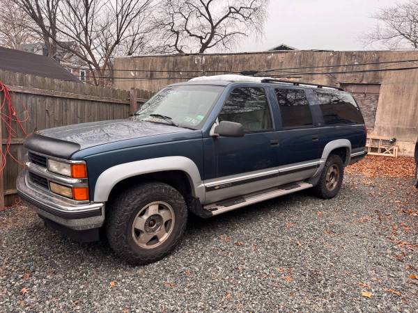 1994 Chevy Suburban, 5.7 auto, 4x4, leather, only 115k, insp, plow mount, brake controller, has some rust on body and a rust spot on frame by bumper, does not affect anything drive it like that, needs muffler and tailpipe, drive it home!