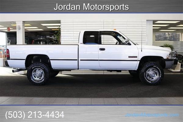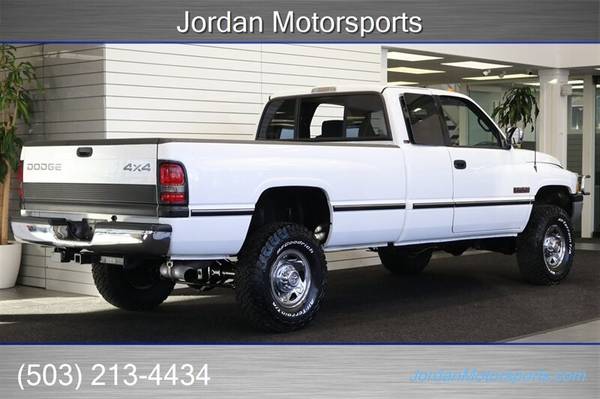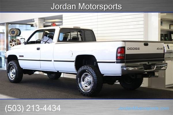 UP FOR GRABS IS A SUPER HARD TO FIND IN THIS SHAPE AND CONDITION AND SUPER LOW MILES ONE OWNER SINCE NEW CLEAN TITLE AND CARFAX CERTIFIED FRESH TRADE IN 1997 DODGE RAM EXTENDED CAB LONG BED SLT LARAMIE 4X4 WITH 5.9L TURBO CUMMINS AND IMPOSSIBLE TO FIND 5-SPEED MANUAL TRANSMISSION AND ONLY 78K ACTUAL MILES. THIS TRUCK IS 100% ALL ORIGINAL AND IN NEW SHAPE INSIDE AND OUTSIDE AS WELL AS THE UNDER CARRIAGE, THE UNDER CARRIAGE OF THIS RAM IS 100% RUST & CORROSION FREE, NEVER BEEN DRIVEN IN MUD OR SNOW, NEVER BEEN DRIVEN DOWN A DIRT ROAD OR OFF ROAD. NO SIGNS OR RECORDS OF ANY ACCIDENTS OR DAMAGES EVER, NO MAJOR DENTS OR SCRATCHES AT ALL, 100% ORIGINAL PAINT IN NEW CONDITION WITH ZERO CLEAR COAT FADING OR PEELING ISSUES, LIKE NEW INTERIOR FREE OF ANY RIPS OR TEARS OR ANY BROKEN PLASTICS AND IN NEW CONDITION DASH. THIS IS COLLECTOR QUALITY IN EVERY WAY. THIS RAM WAS ALWAYS STORED INSIDE A CLIMATE CONTROLLED GARAGE WITH THE COVER ON IT AS WELL.