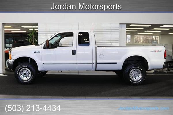 UP FOR GRABS IS A SUPER HARD TO FIND IN THIS SHAPE AND CONDITION AND SUPER LOW MILES LOCAL FRESH TRADE IN CLEAN TITLE AND CARFAX CERTIFIED ONE OWNER SINCE NEW 1999 FORD F-250 EXTENDED CAB LONG BED SUPER DUTY 4X4 WITH TURBO POWERSTROKE 7.3L AND ONLY 90K ACTUAL MILES, NO SIGNS OR RECORDS OF ANY ACCIDENTS OR DAMAGES EVER, NO MAJOR DENTS OR SCRATCHES AT ALL, LIKE NEW INTERIOR FREE OF ANY RIPS OR TEARS OR ANY STAINS ON THE CARPET. THIS IS A NONE SMOKER TRUCK, SAME DRIVER SINCE NEW, GARAGE KEPT ALWAYS, THE PAINT IS IN NEW CONDITION WITH NO CLEAR COAT PEEL OR FADE ISSUES, THE POWERTRAIN IS 100% STOCK WITH NO MODIFICATIONS AT ALL / NO TUNERS / 6-PASSENGER SEATING, ALL POWER OPTIONS, REAR SLIDER, TRAILER BRAKES, TOWING MIRRORS, TINTED WINDOWS, SPRAY IN BED LINER AND THE BED IS IN 100% NEW CONDITION, FRONT BUG SHIELD SINCE NEW, VERY CLEAN UNDER CARRIAGE WITH NO RUST. WE JUST DID A NEW 2.5" LEVEL LIFT WITH ALL NEW BILSTEIN 5100 SERIES SHOCKS ALL THE WAY AROUND, WE ALSO UPGRADED THE TIRES WITH A NEW SET OF 33" BF GOODRICH KO3 10-PLY TIRES ALL THE WAY AROUND, WE ALSO DID A FRESH SERVICE INCLUDING 2-NEW BATTERIES / NEW AIR FILTER / NEW TERMINALS / NEW SERPANTINE BELT / NEW DRIVERS SIDE WINDOW MOTOR / NEW DOOR LOCK ACTUATORS / FRESH AC CHARGE / COOLANT FLUSH AND MORE. THIS FORD COMES WITH ALL ORIGINAL BOOKS AND MANUALS AS WELL.