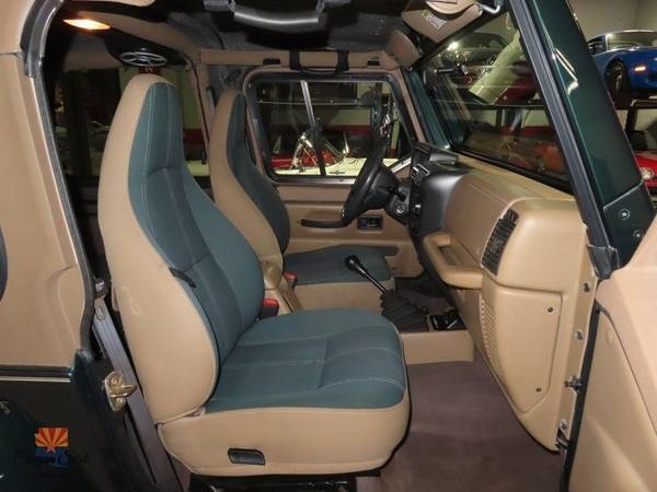 This week, Canyon State Classics brings to market a 1999 Jeep TJ Wrangler Sahara in remarkable condition inside and out. This Jeep comes to us from southern Arizona/California where it spent most of its life. This is one of the neatest TJ's I have ever seen and has not been modified in any way! These 4.0L Wrangler's are getting the market attention they deserve and are getting harder and harder to come by, especially in such a condition like this one! Don't miss out on your chance to own a well preserved Jeep 4X4 before prices climb further! The following is a list of options as this Jeep is currently equipped: -Original 4.0L Inline 6cyl -5 Speed Manual Transmission -Front Dana 30 Rear Dana 44 3.73 Axle Ratio Option -CommandTrac Part time Transfer Case -All Terrain Tires -Original Aluminum Wheels -All Original Deluxe Interior w/ Carpet -Air Conditioning -Original Gauges and Tachometer -Best Top Targa Hardtop The body on the Jeep is totally solid and rust free. This Jeep has lived in California and Arizona Since New. The original green paint has been professionally cut and buffed to a fantastic shine. The body shows very well for the mileage with minimal signs of wear throughout the exterior. The Best Top hardtop is in excellent shape with no fading- a sign that this wrangler has been kept out of the elements! This Sahara features the special graphics package and is accented with a fresh set of All-Terrain tires on the original 15" aluminum wheels. Finished with a beautiful Sahara tire cover. The interior is in great shape all around. The windshield is in very nice condition and the glass is chip free. The original seats are all in very good shape. The seats show very little ware to the cloth...amazing!. All dials and controls function as they should and are illuminated at night. The dashboard is in excellent shape with no cracks. Original carpet is excellent with no rips or ware. The Jeep has an upgraded CD Bluetooth Sat Radio stereo system that sounds great as well. Mechanically, this TJ runs GREAT! The car starts right up and shifts quite easily. The 4.0L engine has been inspected with an oil change and runs like a top! Every mechanical system on this Jeep was gone through and given a clean bill of health. The engine compartment is a true testament to how well this truck has been taken care of. It looks amazing for the mileage! Our jeep tech was astounded by the condition both mechanically and aesthetically of this rare unmodified TJ. All in all, this is one of the cleanest and unmodified Jeeps that I have had the privilege of being associated with. It has been professionally maintained and truly loved by its previous owners. This TJ is a fantastic example and will be the envy of any true Jeep lover! Any further questions please call Jon at 480-703-2337. The car is located in Sunny Mesa, Arizona. Canyon State Classics has been your source of excellent Arizona vehicles on Ebay for over 20 years and has obtained the distinction of an Ebay Platinum seller by keeping 100% POSITIVE feedback with my buyers. Please check my ratings and BUY WITH CONFIDENCE!!