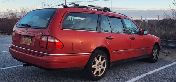 1999 mercedes benz e320 4matic wagon. New tires, popup radio. Great engine. Daily, smooth, peppy driver. Small chip on the windshield with a 6 crack which has not changed in 10 years. I changed most bulbs to LED. The car has rust, of course. No pets, non-smoker owner.