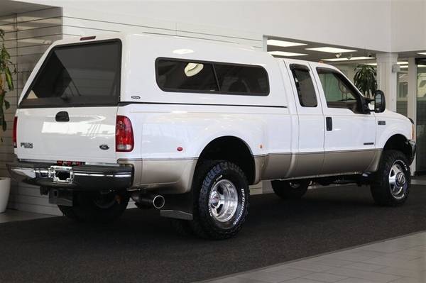 UP FOR GRABS IS A SUPER HARD TO FIND IN THIS SHAPE AND CONDITION F-350 SUPER CAB LONG BED DUALLY 4X4 LARIAT 1-FAMILY OWNED SINCE NEW. NO SIGNS OR RECORDS OF ANY ACCIDENTS OR DAMAGES EVER, NO MAJOR DENTS OR SCRATCHES AT ALL IF ANY, LIKE NEW INTERIOR FREE OF ANY RIPS OR TEARS OR ANY WORN SPOTS OR BROKEN PLASTICS, THE UNDER CARRIAGE IS 100% RUST & CORROSION FREE, NEVER BEEN DRIVEN OFF ROAD OR IN MUD OR SNOW AT ALL. THE BED OF THIS TRUCK IS IN NEW CONDITION AND IS FREE OF ANY DAMAGES AND HAS BEEN PROTECTED WITH A LINEX SPRAY IN BED LINER, COMES WITH SNUG TOP CANOPY, WE JUST DID A NEW LEVELING KIT / UPGRADED ALL SHOCKS W/ BILSTEINS, UPGRADED TIRES TO NEW 33" BFG KO3 10-PLYS, THIS TRUCK IS IN ALMOST BRAND NEW CONDITION AND COMES WITH BD ENGINE BREAK AND BANKS EXHAUST SYSTEM.