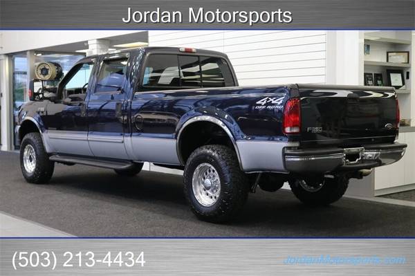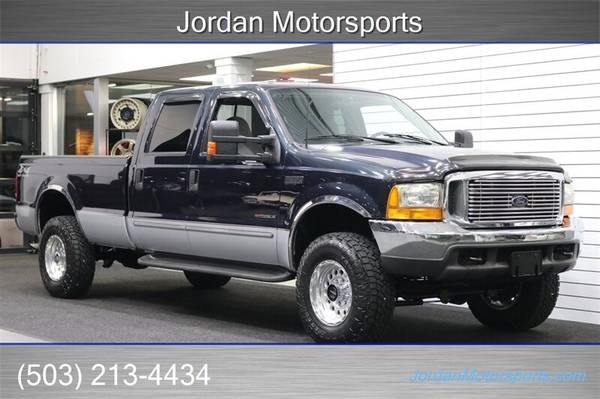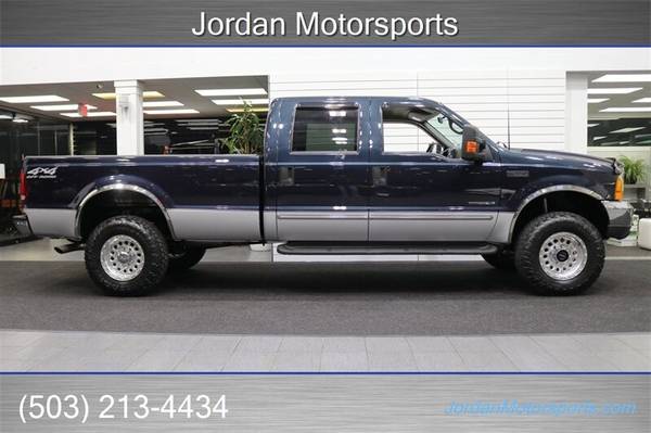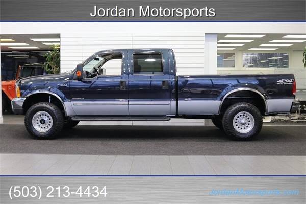 UP FOR GRABS IS A SUPER HARD TO FIND IN THIS SHAPE AND CONDITION AND 100% RUST & CORROSION FREE LOCAL FRESH TRADE IN 2 OWNER SINCE NEW CLEAN TITLE AND CARFAX CERTIFIED 2000 FORD F-350 CREW CAB LONG BED XLT SUPER DUTY WITH TURBO POWER STROKE 7.3L AND IMPOSSIBLE TO FIND 6-SPEED MANUAL TRANSMISSION, 4X4, FULLY LOADED WITH ALL OPTIONS INCLUDING 6-PASSENGER SEATING, REAR SLIDER, OFF ROAD PKG, RUNNING BOARDS, TINTED WINDOWS, SPRAY IN BED LINER, FACTORY 2-TONE PAINT, BILLET GRILL, EXTENDABLE TOWING MIRRORS, TRAILER BRAKES, CB RADIO AND MUCH MORE. NO SIGNS OR RECORDS OF ANY ACCIDENTS OR DAMAGES EVER, NO MAJOR DENTS OR SCRATCHES AT ALL, LIKE NEW INTERIOR FREE OF ANY RIPS OR TEARS OR ANY BROKEN PLASTICS, THE UNDER CARRIAGE OF THIS F-350 IS 100% RUST & CORROSION FREE AND SHOWS NO SIGNS OF EVER BEING DRIVEN IN MUD OR SNOW OR OFF ROAD AT ALL. THIS TRUCK SPENT ITS LIFE IN STOCK CONDITION AND HAS NEVER BEEN MODIFIED OR TUNED AT ALL, WE JUST DID A NEW 2.5" BILSTEIN LEVEL LIFT ON IT WITH ALL NEW BILSTEIN 5100 SERIES SHOCKS ALL THE WAY AROUND AND A NEW ALIGNMENT, WE UPGRADED THE TIRES TO A NEW SET OF 34" TOYO OPEN COUNTRY A/T III 10-PLY TIRES W/ NEW 17" RACE LINE POLISHED WHEELS, WE ALSO JUST DID A FULL MAJOR SERVICE INCLUDING ALL NEW FRONT & REAR BRAKE CALIPERS / ROTORS / BRAKE PADS / AC SERVICE WITH NEW RECHARGE / OIL CHANGE & FILTER / NEW AIR FILTER / 2 NEW FRONT MANUAL LOCKING HUBS / ALL NEW DOOR LOCK ACTUATORS / NEW WIPER BLADES / NEW FRONT SWAY BAR LINKS / NEW BELTS / COOLANT FLUSH W/ NEW RESERVOIR / NEW UPPER & LOWER RADIATOR HOSES W/ CLAMPS / BRAKE FLUID FLUSH AND MORE. THIS F-350 LOOKS & DRIVES GREAT WITH A SUPER CLEAN UNDER CARRIAGE AND A VERY HARD TO FIND 6-SPEED MANUAL TRANSMISSION SO HURRY AND BE THE LUCKY OWNER OF THIS RARE FIND.