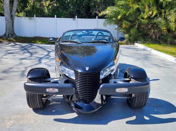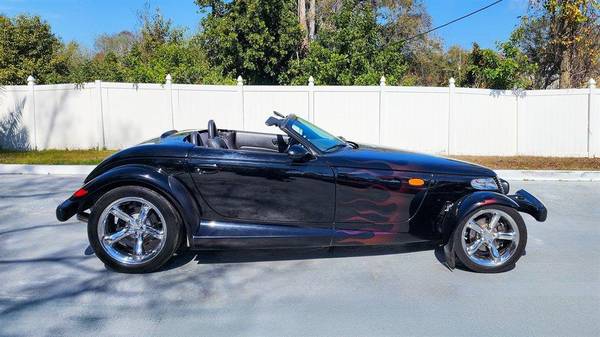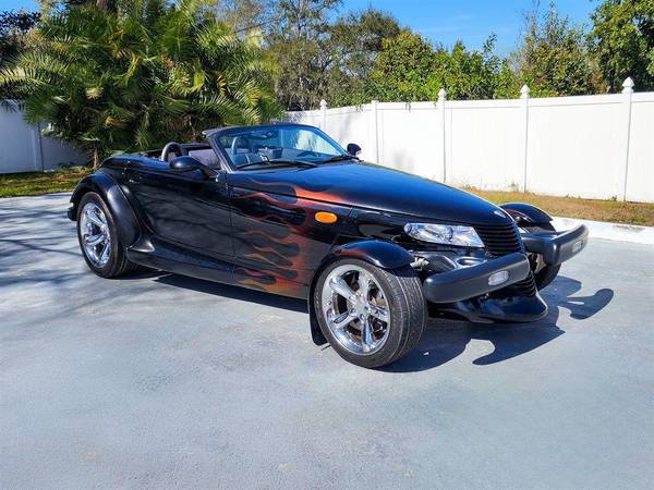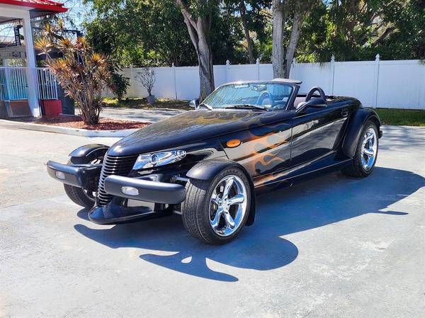 PLYMOUTH 2000 PROWLER, Prowler Black with Agate Leather Interior and Black Convertible Top, 4-Speed Autostick Transmission, Air Conditioning, Chrome Wheels, Cruise Control, Power Windows, Stunning Cruiser with Professionally Applied Ghost Flames, This gorgeous retro classic has been driven on average less than 1,400 miles per year. 253 H.P. 3.5 Liter SOHC Aluminum V6. This vehicle qualifies for our exclusive V.I.P. financing plan. Compare at $35,900 - Sale $29,875 / $329 mo. V.I.P. Call for details. Toy Store, 727-585-6000 www.vettenet.com Open 6 days, Sunday by appointment Trades considered. WE BUY CLEAN CORVETTES! Shipping assistance available to 48 states. We can help with less than perfect credit. SELLING QUALITY LOW MILEAGE CORVETTES FOR 60 YEARS! EXPECT TO BE IMPRESSED PERFORMANCE SPOKEN HERE