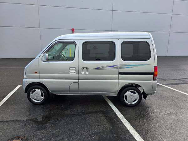 Finished in Silver with a gray cloth interior, this Every represents the newer body style and includes added comfort and safety updates such as middle-row seat belts, making it both practical and road-friendly. Despite its compact footprint, this model is known for being surprisingly quick and capable of highway speeds, setting it apart from many kei vans.