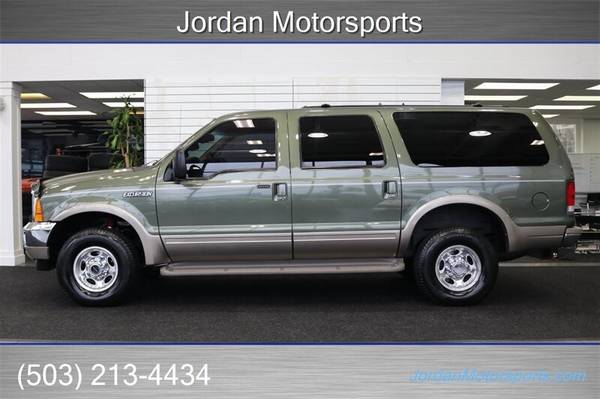 UP FOR GRABS IS A SUPER HARD TO FIND IN THIS SHAPE AND CONDITION AND SUPER LOW MILES LOCAL WEST COAST 2-OWNER SINCE NEW 2001 FORD EXCURSION LIMITED 4X4 WITH TURBO POWERSTROKE 7.3L AND ONLY 105K MILES, 4X4, LOADED WITH ALL OPTIONS FROM THE FACTORY INCLUDING TINTED WINDOWS, 2-TONE PAINT, RUNNING BOARDS, EXTENDABLE TOWING MIRRORS, REAR AIR, HEATED SEATS, REAR PARKING SENSORS, 8-PASSENGER SEATING, FOG LIGHTS, TOW PACKAGE AND MUCH MORE. NO SIGNS OR RECORDS OF ANY ACCIDENTS OR DAMAGES EVER, NO MAJOR DENTS OR SCRATCHES AT ALL, LIKE NEW INTERIOR FREE OF ANY RIPS OR TEARS OR ANY BROKEN PLASTICS AT ALL, SUPER CLEAN CARPET AND HEADLINER, UPGRADED BILLET FRONT GRILL, ALMOST BRAND NEW SET OF MICHLIN DEFENDER LTX 10-PLY TIRES ALL THE WAY AROUND, UPGRADED 4"EXHAUST, UPGRADED SHOCKS, UPGRADED RIFFRAFF CHARGE PIPES WITH BOOTS AND CLAMPS, VIPER ALARM WITH REMOTE START AND MUCH MORE. WE JUST DID A FULL FRESH SERVICE ON THIS EXCURSION INCLUDING NEW AIR FILTER / NEW HOOD SUPPORTS / NEW REAR BRAKE ROTORS - CALIPERS - PADS / BRAKE FLUID FLUSH / AC RECHARGE / NEW SERPANTINE BELT / NEW ALTERNATOR / COOLANT FLUSH / NEW REAR DOOR GLASS ACTUATOR AND MUCH MORE. THIS IS THE EXCURSION THAT YOU HAVE BEEN WAITING FOR SO HURRY AND BE THE LUCKY OWNER OF THIS RARE FIND.