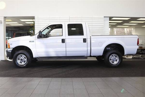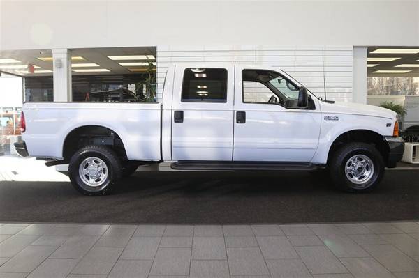 UP FOR GRABS IS A SUPER HARD TO FIND IN THIS SHAPE AND CONDITION AND SUPER LOW MILES 1-OWNER SINCE NEW CLEAN TITLE AND CARFAX 2001 FORD F-350 CREW CAB SHORT BED LARIAT 4X4 WITH ONLY 76K ACTUAL MILES, LIKE NEW IN AND OUT, NO SIGNS OR RECORDS OF ANY ACCIDENTS OR DAMAGES EVER, NO MAJOR DENTS OR SCRATCHES AT ALL IF ANY, LIKE NEW INTERIOR FREE OF ANY RIPS OR TEARS OR ANY BROKEN PLASTICS. THE UNDER CARRIAGE OF THIS TRUCK IS IN NEW CONDITION AND IS 100% RUST & CORROSION FREE, NO SIGNS OF EVER BEING DRIVEN OFF ROAD OR IN MUD OR SNOW AT ALL. THIS TRCUK IS IN COLLECTOR QUALITY, THE PAINT SHOWS NO SIGNS OF CLEAR COAT PEELING OR FADING AT ALL, IT SMELLS LIKE NEW AND THE INTERIOR LOOKS AND FEELS LIKE IT IS BRAND NEW. THIS IS A LOADED LARIAT MODEL, COMES WITH 6-PASSENGER SEATING, HEATED SEATS, REAR SLIDER, TINTED WINDOWS, RUNNING BOARDS, TOW MIRRORS, FOG LIGHTS, SPRAY IN BED LINER, PARKING SENSORS AND MORE. THIS IS A VERY WELL CARED FOR 1 TON V-10 WITH ONLY 76K ACTUAL MILES, 1-OWNER SINCE NEW SAME PERSON ORDERED THE TRUCK AND DROVE IT ALL OF IT'S LIFE, COMES WITH ALL ORIGINAL BOOKS AND MANUALS AND 2 KEYS. WE JUST DID A FRESH SERVICE ON THIS F-350 INCLUDING FRESH OIL CHANGE & FILTER / AIR FILTER / NEW SERPANTINE BELT / PULLEY / NEW FRONT AND REAR BRAKES - ROTORS - CALIPERS / BRAKE FLUID FLUSH / COOLANT FLUSH / AC SERVICE AND RECHARGE / NEW DOOR LOCK ACTUATORS AND MORE. THIS F-350 ALSO COMES WITH ALMOST BRAND NEW ( 2K MLS AGO ) ALL TERRAIN 10-PLY TIRES AND NEW VALVE STEMS AND FRESH ALLIGNMENT. ALSO IT COMES WITH A FLIP BALL GOOSENECK IN BED AS WELL.