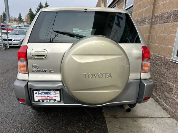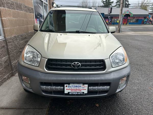 Get ready to hit the road in this sleek and reliable Gold 2001 Toyota RAV4! With a fuel-efficient 2.0L 4-cylinder engine under the hood, this front wheel drive SUV is perfect for all your adventures. Cruise around town with ease thanks to the pwr rack & pinion steering, and feel confident with the pwr ventilated front disc/rear drum brakes. The aerodynamic halogen headlamps light the way as you glide on P215/70R16 all-season tires mounted on stylish 16 5-spoke wheels. Inside, you'll find a comfortable and versatile interior with split-folding rear seats and ample cargo space. Stay connected with the digital clock and illuminated entry, while the dual airbag system and 3-point seat belts provide added safety for you and your passengers. Whether you're running errands or heading out on a road trip, this Toyota RAV4 has you covered with its reliable performance and practical features. Don't miss out on the opportunity to make this SUV your own and enjoy all the adventures that await!