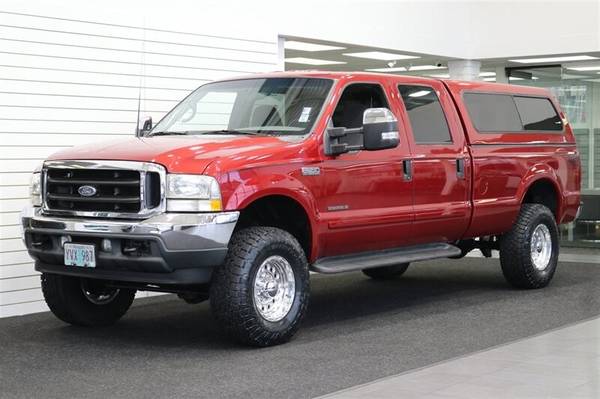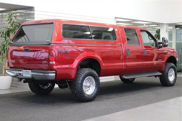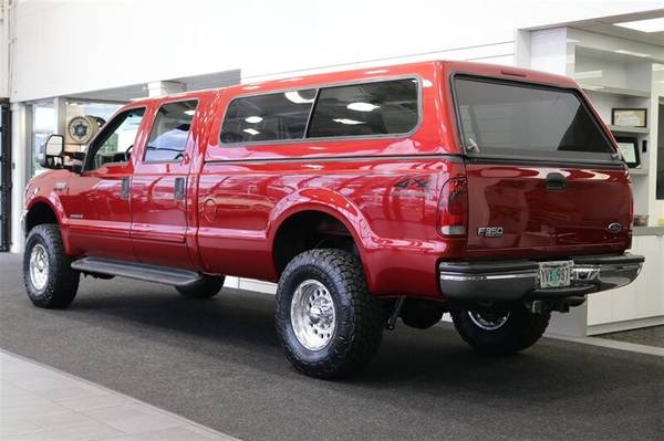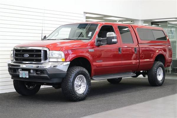 UP FOR GRABS IS A SUPER HARD TO FIND IN THIS SHAPE AND CONDITION AND LOW MILEAGE LOCAL OREGON ONE OWNER SINCE NEW CLEAN TITLE AND CARFAX CERTIFIED FRESH TRADE IN 2002 FORD F-350 CREW CAB LONG BED XLT TURBO POWERSTROKE 7.3L 4X4 WITH ONLY 134K MILES, LIKE NEW IN AND OUT, NO SIGNS OR RECORDS OF ANY ACCIDENTS OR DAMAGES EVER, NO MAJOR DENTS OR SCRATCHES AT ALL, LIKE NEW INTERIOR FREE OF ANY RIPS OR TEARS OR ANY BROKEN PLASTICS OR STAINS ON CARPET, ZERO ODORS. THE UNDER CARRIAGE OF THIS TRUCK IS 100% RUST & CORROSION FREE, NO SIGNS OF EVER BEING DRIVEN OFF ROAD OR IN MUD OR SNOW AT ALL. THE PAINT SHOWS AS NEW, ZERO CLEAR COAT FADING OR PEELING, THE INTERIOR FEELS LIKE NEW AS WELL AND SPENT ALL OF IT'S LIFE PROTECTED WITH CARHARTT SEAT COVERS, 6-PASSENGER SEATING, ADJUSTABLE TOWING MIRRORS, TINTED WINDOWS, REAR SLIDER, RUNNING BOARDS, FOG LIGHTS, UPGRADED HEAD UNIT STEREO WITH APPLE CARPLAY AND WIRELESS CAPABLE, THE BED IS PROTECTED WITH A LINEX SPRAY IN BED LINER, IT HAS NEVER HAD A 5TH WHEEL OR GOOSENECK INSTALLED IN IT, IT ALSO COMES WITH A PAINT MATCHED FULLY INSULATED CANOPY AS WELL. WE JUST UPGRADED THIS TRUCK WITH A NEW 2.5" BILSTEIN LEVELING KIT WITH ALL NEW ON ALL 4 CORNERS BILSTEIN 5100 SERIES SHOCKS AND ALL NEW 35" TOYO OPEN COUNTRY A/T III 10-PLY TIRES ALL THE WAY AROUND WITH ALL NEW 17" RACELINE POLISHED WHEELS. WE ALSO JUST DID A FRESH SERVICE ON THIS F350 INCLUDING NEW SERPENTINE BELT / NEW WIPER BLADES / BRAKE FLUID FLUSH / COOLANT FLUSH / NEW DOOR LOCK ACTUATORS / NEW LICENSE PLATE LED BULBS / AC SERVICE & RECHARGE AND MUCH MORE. THIS F-350 COMES WITH ALL ORIGINAL BOOKS & MANUALS AND 2 SETS OF KEYS AS WELL.