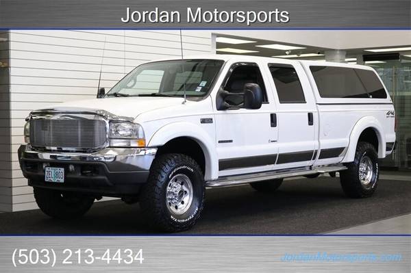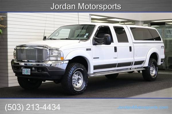 UP FOR GRABS IS A SUPER HARD TO FIND IN THIS SHAPE AND CONDITION AND CENTURION BUILD SPEC LOCAL OREGON SINCE NEW ONE OWNER CLEAN TITLE AND CARFAX CERTIFIED 2002 FORD F-350 CREW CAB LONG BED LARIAT WITH THE UPGRADED CENTURION PACKAGE, LOADED WITH EVERY POSSIBLE OPTION INCLUDING UPGRADED LEATHER INTERIOR, POWER REAR SLIDER, PAINT MATCHED FENDER FLARES, FULL LENGTH RUNNING BOARDS, TOWING MIRRORS, TRAILER BRAKES, CUSTOM MIDDLE SEAT WITH BUILT IN STORAGE, PAINT MATCHED INSULATED CANOPY, SPRAY IN BED LINER, ALLOYS, UPGRADED REAR BUMPER, UNIDEN CB RADIO, UPGRADED BILLET GRILL, BUG SHIELD AND MUCH MORE. NO SIGNS OR RECORDS OF ANY ACCIDENTS OR DAMAGES EVER, NO MAJOR DENTS OR SCRATCHES AT ALL, LIKE NEW INTERIOR WITH NO RIPS OR TEARS OR ANY CRACKS OR STAINS AT ALL. THE EXTERIOR PAINT SHOWS LIKE NEW WITH ZERO CLEAR COAT OR PAINT ISSUES AT ALL, ALWAYS GARAGED IN A CLIMATE CONTROLLED SHOP, UPGRADED PILLAR PODS, UPGRADED EXHAUST TURBO BACK AND MUCH MORE. WE JUST DID A NEW 2.75" LEVELING KIT WITH ALL NEW BILSTEIN 5100 SERIES SHOCKS ALL THE WAY AROUND, WE ALSO UPGRADED THE TIRES TO NEW SET OF 35" BF GOODRICH KO3 10-PLY TIRES ALL THE WAY AROUND, AND WE JUST DID A FULL SERVICE ON IT INCLUDING NEW AIR FILTER / NEW DOOR LOCK ACTUATORS / COOLANT FLUSH / AC RECHARGE / NEW BRAKE LIGHT BULB / NEW ALIGNMENT AND MORE. THIS F-350 SHOWS NO SIGNS OF EVER BEING DRIVEN IN MUD OR SNOW AT ALL, THE UNDER CARRIAGE IS 100% RUST & CORROSION FREE, ALSO NO SIGNS OF ANY OIL LEAKS AT ALL, RUNS AND DRIVES AS DESIGNED WITH EVERYTHING WORKING AS IT SHOULD. THIS CENTURION F-350 COMES WITH A LOT OF SERVICE RECORDS, ALL ORIGINAL BOOKS AND MANUALS AND 2 SETS OF KEYS AS WELL.