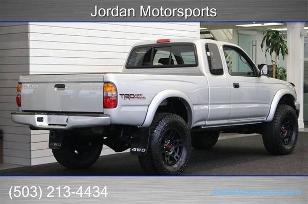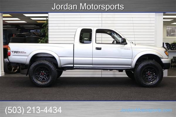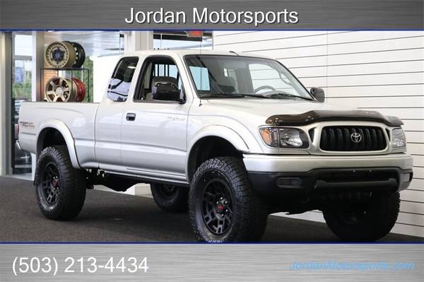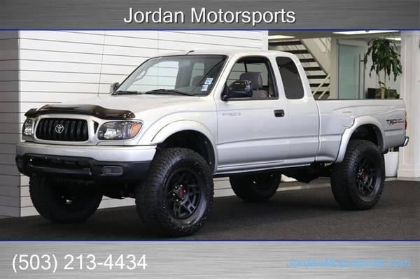 UP FOR GRABS IS A SUPER HARD TO FIND IN THIS SHAPE AND CONDITION AND SUPER LOW MILEAGE CLEAN TITLE AND CARFAX CERTIFIED 2-OWNER SINCE NEW 2002 TOYOTA TACOMA SR5 V-6 5-SPEED MANUAL TRANSMISSION WITH FACTORY TRD OFF ROAD PKG AND REAR LOCKERS, LIKE NEW IN AND OUT, NO SIGNS OR RECORDS OF ANY ACCIDENTS OR DAMAGES EVER, NO MAJOR DENTS OR SCRATCHES AT ALL, LIKE NEW INTERIOR FREE OF ANY RIPS OR TEARS OR ANY BROKEN PLASTICS AT ALL. THIS TACOMA SHOWS NO SIGNS OF EVER BEING DRIVEN OFF ROAD OR IN MUD OR SNOW AT ALL, THE UNDER CARRIAGE IS 100% RUST & CORROSION FREE, THIS TACOMA WAS ALSO IN 100% STOCK CONDITION AND WE JUST UPGRADED IT WITH OUR OVERLAND PKG INCLUDING NEW ADJUSTABLE BILSTEIN TOYTEC LEVEL LIFT WITH DIFFERENTIAL DROPS AND BILSTEIN 5100 SERIES SHOCKS ALL THE WAY AROUND, NEW 33" FALKEN WILD PEAK A/T 4W TIRES ALL THE WAY AROUND, NEW 17" FACTORY OEM TRD PRO FORGED WHEELS, WE ALSO JUST REFINISHED THE FRONT & REAR BUMPERS AND PAINTED THEM BODY COLOR ALONG WITH FRONT GRILL AND FENDER FLARES, WE UPGRADED THE FRONT HEADLIGHTS AND MARKERS TO NEW BLACK HOUSING PKG. THIS TACOMA HAS ALWAYS BEEN SERVICED AT TOYOTA DEALER WITH ALL RECORDS, JUST HAD SECOND TIMING BELT SERVICE DONE WITH NEW WATER PUMP AND TENSIONERS 4K MILE AGO ONLY, ALL FLUIDS HAVE BEEN FLUSHED AND CHANGED INCLUDING COOLANT / WASHER FLUID / BRAKE FLUID / AC CHARGE / DIFFERENTIALS AND MORE, WE ALSO JUST DID A FRESH OIL CHANGE AND FILTER / NEW WIPER BLADES / NEW AIR FILTER AND MORE. THIS TACOMA COMES WITH ALL ORIGINAL BOOKS & MANUALS AND ALL KEYS.
