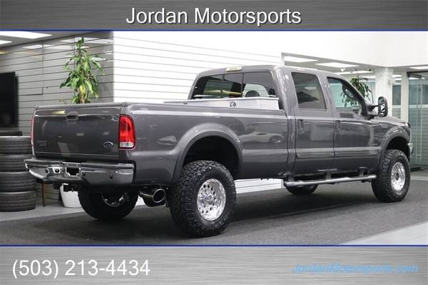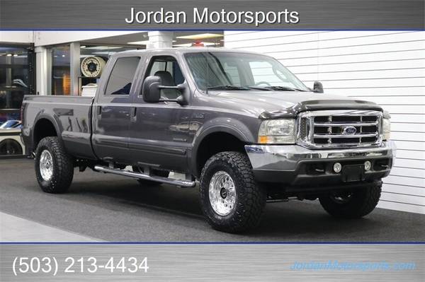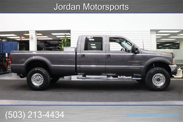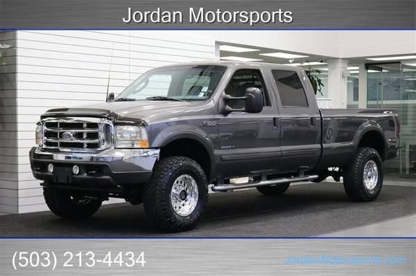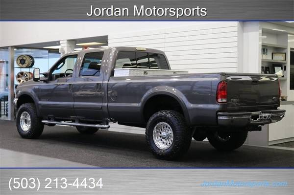 UP FOR GRABS IS A SUPER HARD TO FIND IN THIS SHAPE AND CONDITION AND SUPER LOW MILES LOCAL FRESH TRADE IN CLEAN TITLE AND CARFAX CERTIFIED 2003 FORD F-350 CREW CAB LONG BED LARIAT LOADED WITH ALL OPTIONS FROM THE FACTORY INCLUDING 6-PASSENGER SEATING, LEATHER HEATED SEATS, TOWING MIRRORS, RUNNING BOARDS, FOG LIGHTS, REAR SLIDER, PARKING SENSORS, TOW PACKAGE, TRAILER BRAKES, REAR LOAD LEVELING AIRBAGS AND MUCH MORE. NO SIGNS OR RECORDS OF ANY ACCIDENTS OR DAMAGES EVER, NO MAJOR DENTS OR SCRATCHES, LIKE NEW NON-SMOKER INTERIOR FREE OF ANY RIPS OR TEARS OR ANY BROKEN PLASTICS. THE UNDER CARRIAGE IS 100% RUST & CORROSION FREE, NO SIGNS OF EVER BEING IN MUD OR SNOW AT ALL, NEVER HAD A 5TH WHEEL OR GOOSENECK INSTALLED, THE BED IS IN A GREAT SHAPE, THE PAINT AND CLEAR COAT IS IN EXCELLENT SHAPE, COMES WITH A DROP IN DIAMOND PLATE TOOL BOX, ALL ORIGINAL BOOKS AND MANUALS AND 2 KEYS. WE JUST DID A FULL SERVICE ON THIS F-350 INCLUDING OIL CHANGE & FILTER / NEW DOOR LOCK ACTUATORS / NEW WIPER BLADES /COOLANT FLUSH / AC RECHARGE / NEW 2.5" FRONT LEVELING KIT WITH BILSTEIN 5100 SERIES SHOCKS ALL THE WAY AROUND, BILSTEIN FRONT STEERING STABILIZER AND MORE. WE ALSO UPGRADED THE WHEELS TO NEW 17" RACELINE POLISHED WHEELS WITH NEW 35" TOYO OPEN COUNTRY A/T 3 10-PLY TIRES AS WELL. THIS F-350 COMES WITH A NEW REBUILT TRANSMISSION WITH HEAVY DUTY TORQUE CONVERTER AND BILLET GEARS 6K MILES AGO AS WELL A NEW TRANSFER CASE SEAL, UPGRADED K&N COLD AIR INTAKE, 4" EXHAUST TURBO BACK WITH MUFFLER AND MORE.