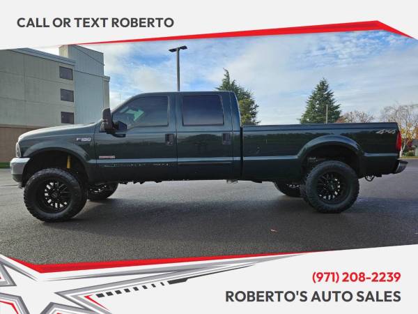 Roberto's Auto Sales have more than 25 yrs experience, serving the community with the vehicle's needs, we have EZ financing, all inventory has a clean title, we have car fax available, call or text me at 971-208-2239 for any questions. Introducing the powerful and reliable 2003 Ford F-350 Super Duty XLT! This beast of a truck is equipped with a Power Stroke 6.0L Diesel Turbo V8 engine, delivering an impressive 325 horsepower and 560 foot-pounds of torque. With its strong and sturdy build, this F-350 is built to tackle any task with ease. With extra spacing and ample room in the cabin, this truck is perfect for hauling heavy loads or transporting passengers comfortably. Don't miss out on the opportunity to own this tough and dependable 2003 Ford F-350 Super Duty XLT. Come in for a test drive today and experience the power and performance for yourself!