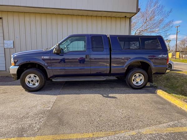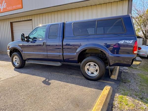 Up for sale is another premium listing by Car Cafe LLC: a 2003 Ford F-250 6.8L V10 Triton 4x4, Extended Cab. This refined truck features a bold blue exterior in great condition—truly above average for its year and mileage. The interior is the Lariat trim, featuring gray leather, a power driver’s seat, a trip computer, and an in-dash CD player. The AC is cold, keeping you comfortable, and it’s equipped with Michelin tires (LT265/75 R16) with plenty of tread. This F-250 has a great ride and drive. It has a clean Carfax, no accident history, a clear title, and no check engine lights or oil leaks. Inside and out, it is in great condition—no major dents, no scratches—just minor touch-ups typical of its age. This is a fantastic truck—don’t miss out!