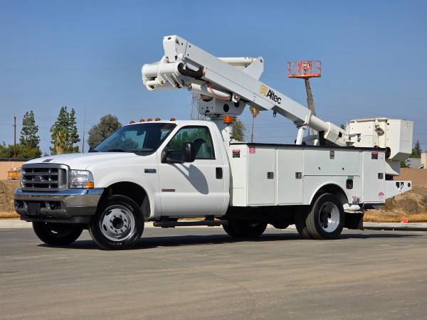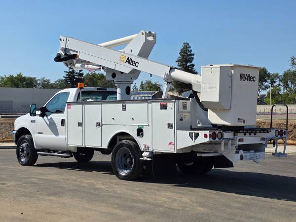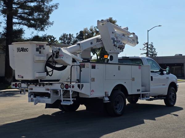 This Professional looking Ford F-550 Super Duty has a heavy duty mounted ALTEC TA37M 37' single man Bucket with heavy duty Outriggers and a material handler and a 6.0L PowerStroke Turbo Diesel engine to ensure the best equipment on this rig for the right job.