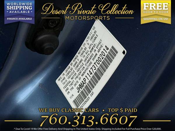Desert Private Collection proudly presents this exceptional 2003 Honda S2000, a beautifully preserved example finished in a stunning blue exterior with matching blue leather interior — one of the most sought-after and desirable color combinations produced for the S2000.