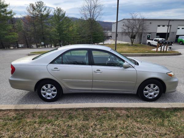 2003 Toyota Camry LE for sale at C&R Enterprises in Downingtown Pa. This Silver Camry LE is in Excellent Running and Driving Condition ! 4 Cylinder Engine, Automatic Transmission with Over Drive. This car was well maintained and serviced. Many New Parts including New Brakes and Rotors Front and Linings Rear. Pennsylvania State Emission and Safety Inspections have just been Completed along with an under Hood Service including Fluids. No Damage and No Rust. The Heater is Hot and the Air Conditioner is Cold. This car is Extra Clean and was a Non-Smokers car. AM FM Cassette CD Player, Power Windows, Power Door Locks, Power Door Mirrors, Adjustable Steering Column, Rear Window Defogger, Remote Trunk Release and Extra Factory Camry Trunk Floor Mat. With a low 160,732 miles this Camry LE is Perfect for the Local High Schooler or Young Adult off to College, Toyota Economy and Reliability with Air Bag Safety ! Come look it over and take it for a drive you won't be Disappointed. Please call Bob at 610-291-0554 or Ron at 484-678-2309. See us also on Facebook at C&R Enterprises.