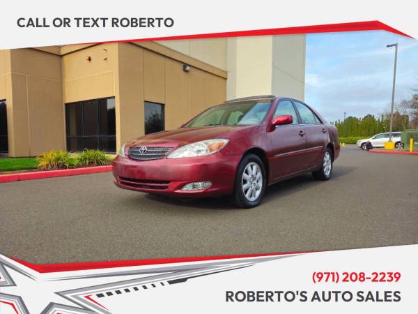 Roberto's Auto Sales have more than 25 yrs experience, serving the community with the vehicle's needs, we have EZ financing, all inventory has a clean title, we have car fax available, call or text me at 971-208-2239 for any questions. Looking for a reliable and efficient vehicle? Look no further than this 2003 Toyota Camry! With its 2.4L I4 engine, producing 157 horsepower and 162 foot-pounds of torque, this car is sure to get you where you need to go. Plus, with its spacious interior and comfortable seating, you'll have plenty of room for passengers and cargo. This Camry also comes equipped with features such as power windows and locks, cruise control, and a CD player for your convenience. Don't miss out on this opportunity to own a quality Toyota vehicle. Come take a test drive today!