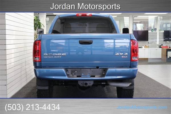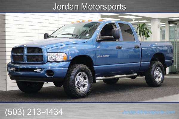 UP FOR GRABS IS A SUPER HARD TO FIND IN THIS SHAPE AND CONDITION AND LOW MILES LOCAL OREGON / CALIFORNIA ONE OWNER SINCE NEW CLEAN TITLE AND CARFAX CERTIFIED FRESH TRADE IN 2004.5 DODGE RAM 3500 1-TON CREW CAB SHORT BED SLT 4X4 WITH TURBO CUMMINS 5.9L HIGH OUTPUT AND ONLY 117K ACTUAL MILES. LIKE NEW IN AND OUT, NO SIGNS OR RECORDS OF ANY ACCIDENTS OR DAMAGES EVER, NO MAJOR DENTS OR SCRATCHES AT ALL, LIKE NEW INTERIOR FREE OF ANY RIPS OR TEARS OR ANY BROKEN PLASTICS, PERFECT DASH AND HEADLINER, EXCELLENT CONDITION CARPET AND PAINT WITH NO CLEAR COAT ISSUES WITH PEELING OR FADING AT ALL. THERE IS NO SIGNS OF THIS TRUCK EVER BEING DRIVEN IN MUD OR SNOW AT ALL, THE UNDER CARRIAGE IS 100% RUST & CORROSION FREE, THERE IS NO SURFACE RUST EVEN. THIS TRUCK IS LOADED WITH ALL OPTIONS INCLUDING 6-PASSENGER SEATING, FACTORY TINTED WINDOWS, RUNNING BOARDS, TOWING MIRRORS, SPRAY IN BED LINER, POWER SEAT, INFINITY SOUND SYSTEM, POWER SEAT, TRAILER BRAKES AND MORE. THIS TRUCK COMES WITH REAR LOAD LEVELING AIRBAGS AND TOP OF THE LINE SUPER GLIDE 5TH WHEEL SET UP. THIS RAM COMES WITH ALMOST A BRAND NEW ( 3K MILES AGO ) 33" ALL TERRAIN A/T II 10-PLY TIRES, ALL ORIGINAL BOOKS AND MANUALS AND 2 SETS OF KEYS AND REMOTES. WE JUST DID A FRESH SERVICE ON THIS RAM INCLUDING OIL CHANGE & FILTER / NEW FRONT SWAY BAR LINKS / BRAKE FLUID FLUSH / NEW BATTERY TERMINALS / AC FRESH SERVICE & CHARGE / NEW WIPER BLADES / NEW AIR FILTER / NEW SERPENTINE BELT / COOLANT FLUSH AND MUCH MORE. THIS RAM COMES WITH UPGRADED BANKS MONSTER EXHAUST AS WELL, NEVER BEEN TUNED, STOCK SUSPENSION. THE ULTIMATE SUPER CLEAN RUST FREE 1-TON GARAGE KEPTS AND UNMODIFIED.