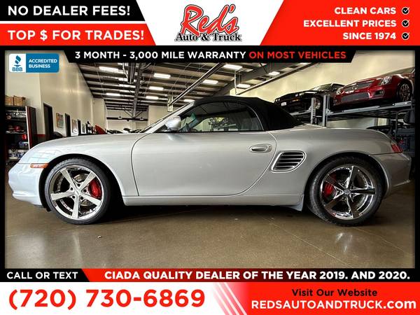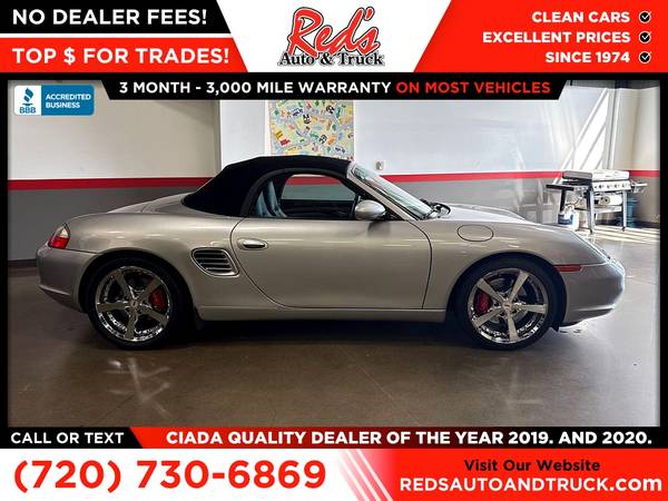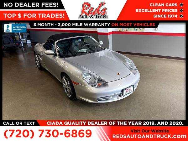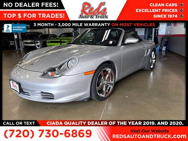 LOW MILES, CHECK, 6-SPEED MANUAL, CHECK, CLEAN CARFAX, CHECK, NO HIDDEN FEES, CHECK! This 2004 Boxster checks all the boxes and more! Red's Auto And Truck is pleased to present this 2004 Porsche Boxster S. This S has traveled just 27,000 miles from new or around 1,200 per year, just 100 per month #LMNM. This 2004 Boxster sports a proper 6-speed manual gearbox connected to a 3.2-liter flat 6, making 276 horsepower, giving the S a great balance of power to weight. This example was sold new on June 9, 2004, at Pepe Porsche in White Plains, NY. The first owner resided in Connecticut, where he enjoyed the car until May of 2005, when it was sold to Porsche of Omaha, remaining in Nebraska for enjoyment and service until coming to the Colorado area, where ED Carrol Porsche took over maintenance and service duties with a recent service and fuel pump replacement at 27,149 in August of 2025. We just performed an inspection and service, which included AC service, a new engine air filter, a new cabin air filter, as well as an oil and filter service. This is a solid, well-kept example of the car that saved Porsche. Remember, we also never charge a dealer handling or doc fee, include a limited warranty on most vehicles, and offer great protection plans at an affordable price to help protect your purchase for years to come.Please call Reds Auto and Truck at 303-726-5520. We are a proud member of CUDL and have access to many Credit unions at great rates. We are an A+ Rated Business with the BBB, Winners of the 2019 & 2020 CIADA Quality Dealer Of The Year Award, and have excellent online reviews. We have been in business since 1974. Meet us and see why. We offer clear, low upfront prices and also have no hidden dealer handling or documentation fees! Our vehicles undergo a multi-point inspection and reconditioning process, and most vehicles come with a 3-month 3,000-mile limited warranty. You can always see more photos and other cars at www.redsautoandtruck.com (http://www.redsautoandtruck.com/) or stop by 1451 Vista View Drive, Longmont, CO 80504.