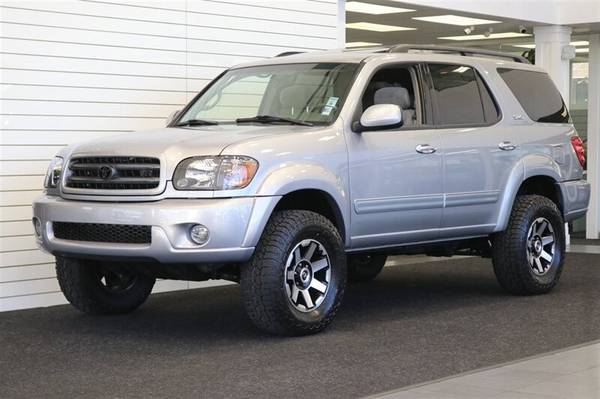 UP FOR GRABS IS A SUPER HARD TO FIND IN THIS SHAPE AND CONDITION AND FULLY DOCUMENTED SERVICE HISTORY AT TOYOTA DEALER AS WELL AS A LOT OF UPGRADES INCLUDING A NEW OVER LAND PACKAGE CLEAN TITLE AND CARFAX CERTIFIED FRESH TRADE IN 2004 TOYOTA SEQUOIA SR5 4X4 LOADED WITH ALL OPTIONS, 8-PASSENGER SEATING, TINTED WINDOWS, MOON ROOF, ROOF RACK, ALL POWER OPTIONS, UPGRADED KENWOOD HEAD UNIT AND MORE. LIKE NEW IN AND OUT, NO SIGNS OR RECORDS OF ANY ACCIDENTS OR DAMAGES EVER, NO MAJOR DENTS OR SCRATCHES AT ALL, LIKE NEW INTERIOR FREE OF ANY RIPS OR TEARS OR ANY BROKEN PLASTICS, THE UNDER CARRIAGE IS 100% RUST & CORROSION FREE AS WELL WITH NO SIGNS OF IT EVER BEING DRIVEN IN MUD OR SNOW AT ALL. THIS SEQUOIA WAS 100% STOCK AND WE JUST UPGRADED IT WITH OUR OVERLAND PACKAGE INCLUDING NEW 2.75" BILSTEIN TOYTEC LEVEL KIT WITH ADJUSTABLE BILSTEIN 5100 SERIES SHOCKS ALL THE WAY AROUND WITH DIFFERENTIAL DROPS, NEW 17" OEM TRD OFF ROAD WHEELS WITH NEW 33" FALKEN WILD PEAK A/T 4W TIRES ALL THE WAY AROUND, WE ALSO UPGRADED THE FRONT HEAD LIGHTS AND FOG LIGHTS TO BLACK HOUSING LED HEADLIGHTS AND PAINTED FRONT GRILL GLOSS DARK GRAY AND PAINT MATCHED MIRROR CAPS AND REAR TRUNK MOLDING. THIS SEQUOIA JUST GOT SECOND TIMING BELT DONE ALONG WITH WATER PUMP 6K MILES AGO, WE ALSO JUST DID A FULL SERVICE INCLUDING FRESH OIL CHANGE & FILTER / NEW AIR FILTER / SERPANTINE BELT / RACK & PINION BUSHING SET / AC SERVICE / TUNE UP / BRAKE FLUID FLUSH AND MORE. THIS SEQUOIA RUNS AND DRIVES BETTER THAN ANOTHER SEQUOIA WITH 50K MILES 100% AND IT COMES WITH ALL ORIGINAL BOOKS AND MANUALS AND 3 KEYS AND SERVICE RECORDS.