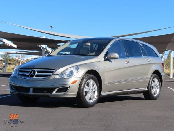 Up for sale the week, Canyon State Classics brings to market a super clean Mercedes-Benz R500 4Matic Wagon. This is a fully dealer serviced Benz which spent most of its life in the Palm Springs area and received every scheduled maintenance on time. 2006 was the first year for the R500 on the W251 chassis, and it is powered by the 5.0L Mercedes V8 backed by 4Matic All Wheel Drive which has a reputation as being one of the greatest drivetrains ever built. Don't miss your chance to own this beauty for a fraction of the original sticker.... SO BUY NOW!! The following is a list of options as this R500 is currently equipped: -5.0L V8 -4Matic All Wheel Drive -18" MB Wheels w/ Newer Tires -Light Burl Walnut Accents -Heated Power Front Seats -Panoramic Sun Roof -Four Zone Climate Control -Rear Air Conditioning -Auto Dimming Mirrors -Tire Pressure Monitoring System -Premium Harman Kardon Sound with 6 CD Changer -GPS Navigation System -Power Adjustable Steering Wheel The body on this R-Class is in excellent condition overall. The car is finished in Cubanite Silver, which is an absolutely gorgeous color. The paint on the car has been garage kept and is overall very nice for the mileage. The body is all arrow straight without any door dings and is straight as an arrow on the sides. All four wheels look very nice with newer all season tires. The interior is in great shape all around. The Tan Nappa leather interior and Light Birdseye trim is all very nice and doesn't show any ware at all. All seats, door panels, and carpets are in very good condition and look great. The interior is extremely comfortable and well optioned. All accessories work inside the car including the heated seats, Navi, CD Player, sound system, etc. Overall condition of the interior is a 9 out of 10. The interior is finished off with a set of Mercedes floor mats. Mechanically, this R500 runs like a top. I can't describe how nice this car drives. It is extremely smooth and luxurious, but with the stomp of your foot you unleash all the power of the V8. The motor provides ample power to move the car around and you always have power on demand. All correct accessories are in place and the motor has been completely cleaned and detailed to original condition. The wagon had its most recent "A" service including oil change with Mobil 1 and my service advisor said it is one of the nicest R500's he has seen, and gave it a clean bill of health! The car is tight as a drum with no leaks. She's ready for the road! All in all, this is one heck of a nice car to drive and will get compliments as well as stares everywhere it goes. If you have been searching for a very nice R500 in the best color combo, the search ends here. The car has a clean Arizona title. If you have any additional questions please call Jon at 480-703-2337. The car is located in beautiful sunny Mesa, AZ. Please email or call with any questions and I welcome international bidders! I can also help with shipping quotes and arrangements. We ship cars all over the world! Canyon State Classics has been your source of excellent Arizona vehicles on Ebay for over 20 years and has obtained the distinction of an Ebay Top Rated Platinum Seller by keeping 100% POSITIVE feedback with my buyers. Please check my Ebay, Google and ratings and BUY WITH CONFIDENCE!!