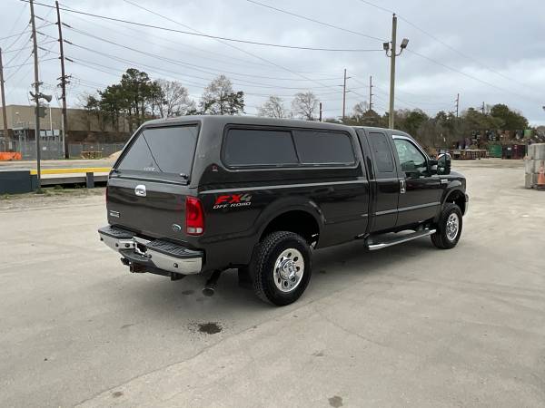 Hi and thanks for taking a look at my 2007 Ford F-250 Super Duty Super Cab FX4 4x4 8 Foot Bed. This F-250 has only 65,896 original miles on its strong 5.4 liter V8 engine and automatic transmission. It runs, drives and shifts 100%, the 4x4 engages in both high and low with the turn of a switch without an issues. It has only had 1 owner, a CLEAN title, 1 minor accident (per Carfax, minor damage is usually cosmetic, including dents or scratches to the vehicle body) and was not abused or modified. The truck does not have any rot or bubbling, the under carriage and rockers are in excellent condition (see photos). Some high value options this F-250 has in the FX4 package, premium chrome rims, 4 wheel abs, sliding rear window, power driver seat, power locks, windows, mirrors, power steering, tilt steering wheel, radio, cd, bluetooth radio+phone, usb port, parking sensors, dual air bags, running boards, Leer pick up shell (the paint is peeling on it), bed liner, towing package, factory upfitter switches and more.