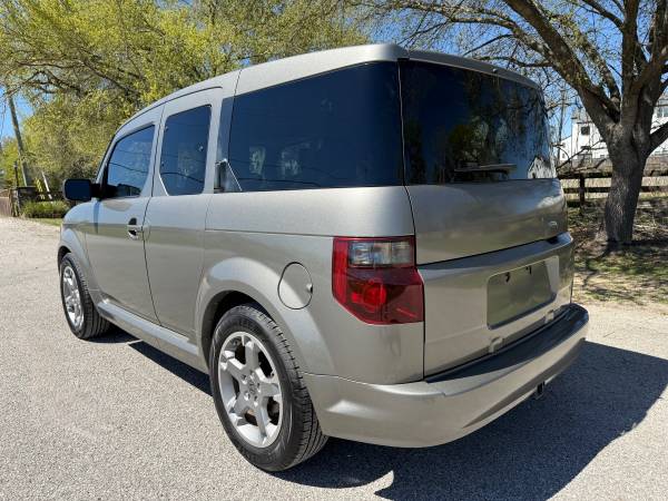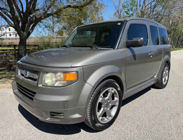 Very nice 2007 Honda Element SC. Two meticulous owners since new. 238K highway miles. 2.4 liter 166hp 4-cyl engine. Automatic transmission. Galaxy Gray with charcoal cloth interior. Loaded with power windows, power locks, tilt, cruise, remote entry, CD, side airbags, 4-wheel ABS brakes, alloy wheels, tinted windows, cold A/C. Well maintained (40 service records on Carfax). Fully serviced and detailed. Oil changed. New battery. New tires. New air filters. No accidents. Clean and clear title. Clean Carfax. VIN# 5J6YH18907L007294. Priced to sell fast! $4995 Firm. Please call us at 281-288-3600. AFTER HOURS 832-797-5724.
