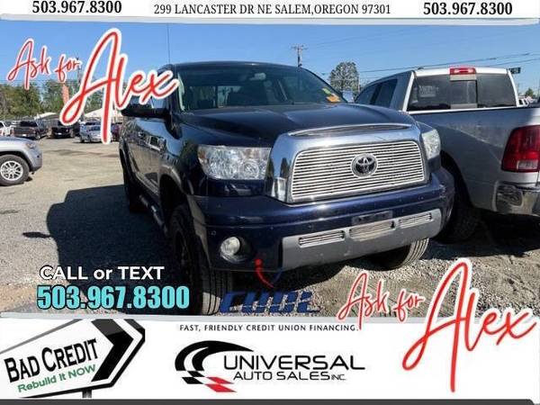 Welcome to Universal auto sales Next to Dicks Sporting Goods. Ask for Alex 5 ⃣0 ⃣3 ⃣-9 ⃣6 ⃣7 ⃣-8 ⃣3 ⃣0 ⃣0 ⃣ FINANCING AVAILABLE FOR ALL CREDIT SITUATIONS -WE PAY TOP DOLLAR TRADE INS! -WE ARE A CUDL DEALERSHIP AND HAVE FINANCING OPTIONS FOR ALL CREDIT TYPES! (CREDIT UNION DIRECT LENDING) -LOW FINANCING RATES! (OAC) -SERVICE CONTRACTS AVAILABLE! -CARFAX REPORTS AVAILABLE FOR EVERY VEHICLE! Hablamos Español: ITIN Aceptado Ask For Alex UNIVERSAL AUTO SALES INC 299 Lancaster Dr Ne Salem Oregon 97301 503.967.8300 DA2913 Are you in the market for a reliable and powerful truck? Look no further than this 2007 Toyota Tundra Limited. With its 5.7L V8 engine boasting an impressive 381 horsepower and 401 ft. lbs. of torque, this truck is ready to take on any task. Its 6-speed shiftable automatic transmission provides smooth and effortless shifting. But the power and performance are just the beginning.