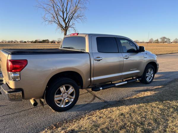 2007 Tundra 4x4 5.7 Limited in good condition. The truck has been garage-kept by all owners and serviced by Toyota. Custom entertainment screen with Bluetooth. A couple exterior dings, interior in great shape. Soft tonneau cover and bedliner. $1000 of new Michelin Defender tires last year. This is a great truck and these Tundras often provide 500k miles of service. I dont want to sell it but the wife says its time to get a smaller SUV.