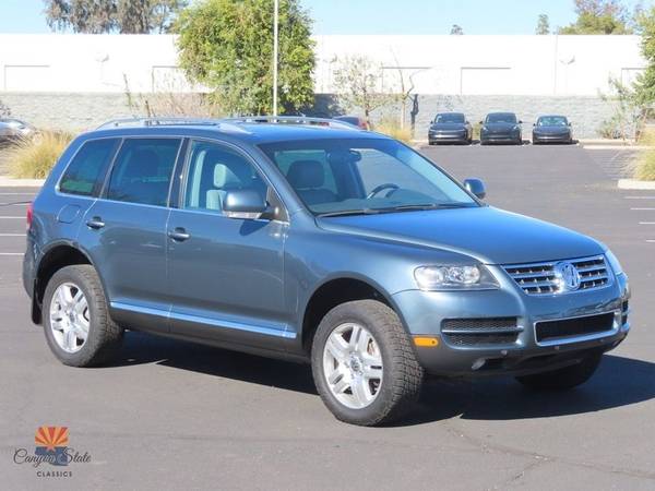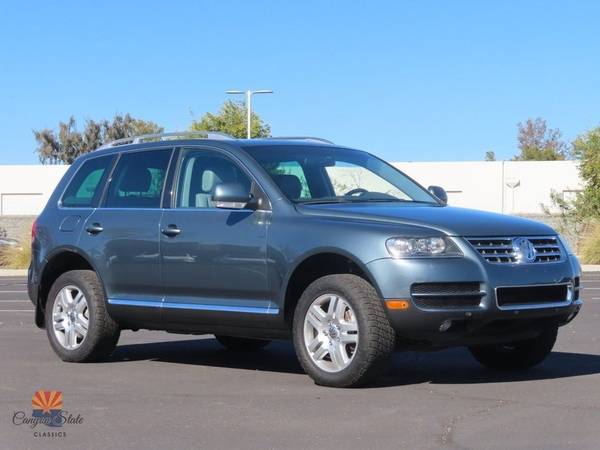 This week, Canyon State Classics brings to market a rare 2007 Volkswagen Touareg V10 Diesel in Silver Gray Metallic over Gray Nappa leather appointments. Power comes from the notably unique 5.0l V10 diesel producing 310 hp and 553 ft lbs of torque! Power is ran through a 6 speed tiptronic automatic mated to VW's 4MOTION four wheel drive system. This 3 owner example comes to us from So Cal after the same ownership since 2010. The TDI Touareg is a versatile platform that blends power and size just right. It is hard to find another capable (550+ ft lb) tow rig in such a concise configuration. Dont miss out on this one for a fraction of the original MSRP! The following is a list of options as this Touareg is currently equipped: - 5.0l V10 Turbo Diesel Engine - 6 Speed Automatic Transmission - 4Motion All Wheel Drive - Full Leather Interior - Sunroof - BiXenon headlights - Tow package - Lux package - Navigation w/ Touchscreen Interface - 18" VW 5-Spoke Alloys w All-Terrain Tires - Heated Seats The body on this Touareg is in excellent condition overall. The SUV is finished in LD7V Silver Gray metallic, which is an absolutely gorgeous and stand-out color. The paint on the car has been garage kept and is overall very nice as it should be. The car has just received a high dollar extensive detail. The truck is riding on a set of 18" VW Twin spoke alloys wrapped in Nitto AT tires. Overall condition of the exterior is a 9 out of a 10 The interior is in great shape all around. The gray nappa leather interior and trim is all very nice and shows minimal wear. All door panels and carpets are in very good condition and look great. The interior is extremely comfortable and well optioned to include heated front seats, sunroof and upgraded sound. All accessories work inside the car. Overall the condition of the interior is a 9 out of 10. Mechanically, this Touareg runs like a top. I can't describe how nice this SUV drives. It is extremely smooth and luxurious, but with the stomp of your foot you unleash all the torque of the turbo diesel motor. The engine provides ample power to move the SUV around and you always have power on demand, but it is also very efficient. All correct accessories are in place and the motor has been completely cleaned and detailed to original condition. The truck is ready for the road! All in all, this is one heck of a nice SUV to drive and will get compliments as well as stares everywhere it goes. The Touareg Diesel is fairly rare and you don't see many on the road. You really must see the truck in person and drive it to really appreciate all it has to offer. This car truly brings the best of both words with performance and luxury. If you have been searching for a very nice Cayenne in the best color combo, the search ends here. If you have any additional questions please call Jon at 480-703-2337. The car is located in beautiful sunny Mesa, AZ. Please email or call with any questions and I welcome international bidders! I can also help with shipping quotes and arrangements. We ship cars all over the world!