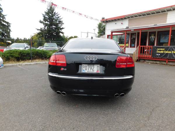 Seller Comments: 2008 Audi S8 Quattro – 79K Miles – V10 Performance Sedan Rare and well-kept Audi S8 with only 79,000 miles.Powered by a 5.2L V10 (Lamborghini-derived) with 450 HP and Audi’s legendary Quattro AWD.✅ Clean title, excellent condition ✅ Premium leather interior, heated seats ✅ BOSE surround sound, navigation, Bluetooth ✅ Adaptive air suspension, sport & comfort modes ✅ Low mileage for the year – only 79k Luxury, performance, and reliability in one package.This S8 delivers supercar power with full-size comfort.CALL OR TEXT 503-213-4101 We are a CUDL Dealer! (Credit Union Direct Lending) We are so proud to be one of the few used car dealers who received the 2022, 2023, 2024 Reputations 800 Award which is given to dealerships who achieve a reputation score of over 800. We wanted to set ourselves apart from every other used car dealer by honoring a commitment to full transparency.We are a CARFAX Advantage Dealer with links to full reports on our website.Of course all of our vehicles undergo a full inspection by our ASE Certified mechanics.You are more than welcome to have your own mechanic do an independent inspection.Our only objective is to provide you with 5 Star Service irrespective of whether or not you purchase a vehicle.