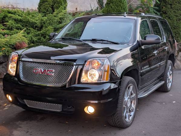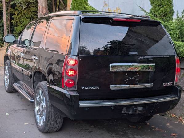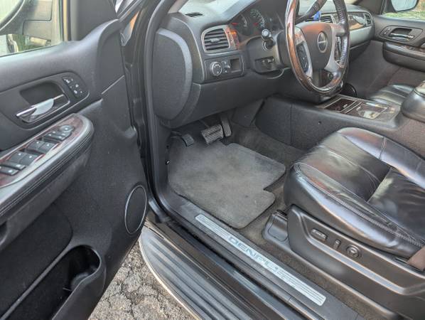 2008 GMC Yukon Denali, 4x4, 6.2 LS engine producing almost 400 horsepower, a real looker and loaded with equipment like only Denali can do, including heated seats, power moonroof, running boards, towing package, drop down video screen and all of the normal bells, whistles and toys. The Carfax shows two owners. This has been my personal daily driver and it is in excellent condition. I added the Escalade wheels and a little extra bling so this one looks a little closer to an Escalade than a Denali. The last three of these that I have driven I have had to seal up the oil leaks. These LS engines are amazing but about these miles they start leaking oil and the only way to seal them up is to pull the engine and reseal everything. It's expensive but these engines will run a long time. (If you're looking at one that hasn't had the reseal done, it will start leaking somewhere in this mileage range, they all do and the rear main seal can only be sealed by pulling the engine out so we did that in our shop as well as the valve covers, the pan gasket, intake manifold gasket and exhaust manifolds and donuts, spark plugs for good measures also which means it sounds amazing and its ready to go! Most of these engines will run 300K+, it doesn't use oil It has amazing power and if you haven't driven one they are a treat, the extra power from the 6.2l is noticable compared to the 5.3 in the Chevy Tahoe. The suspension is good, the steering is good, the brakes are good. These are my favorite vehicles to drive and when I find them I put them in excellent shape and then drive them until I find the next one. I found an Escalade so now I'm selling this one. This one is Black and Beautiful and it drives spot on.