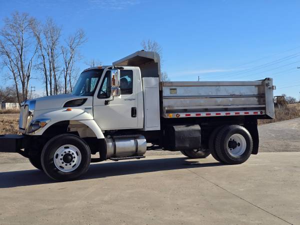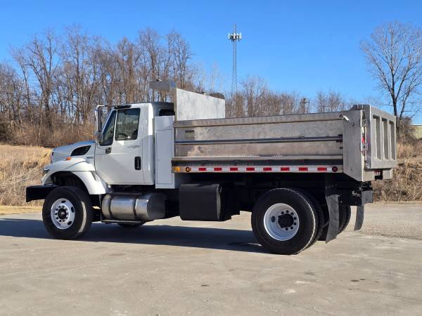 This Low Use Dump Truck has been well maintained and it shows in the condition here. The exterior is great. The interior is great! The dash board is amazingly clean and everything works as it should. It runs, drives, shifts and stops just as it should. AC BLOWS ICE COLD ! It is ready for WORK today ! This 7400 just returned from a 2 hour round-trip journey with ZERO issues. She drives 65 mph easily and the cabin hosts an AirRide Seat that is in Great Condition and is Comfortable for anyone at any driving distance. It sits on great 22.5" Tires (deep tread). This TRUCK is a pleasure to drive. Drives "GREAT" Looks "GREAT" ... This INTERNATIONAL truck just recently passed inspection. The dash has NO lights on for service or maintenance needed ...