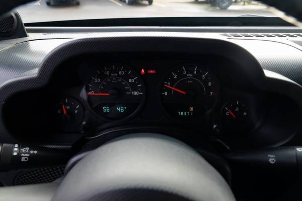 4WD, 17" x 7.5" Aluminum Wheels, ABS brakes, Air Conditioning, AM/FM CD/MP3 Radio, Cloth Bucket Seats, Driver Height Adjuster Seat, Fog Lamps, Front anti-roll bar, Front Floor Mats, Full Length Floor Console, Leather Wrapped Steering Wheel, Quick Order Package 23S, Speed Control, Sunrider Soft Top, Temperature & Compass Gauge, Tow Hooks (2 front/1 rear). 4WD Odometer is 24940 miles below market average! Bright Silver Metallic Clearcoat