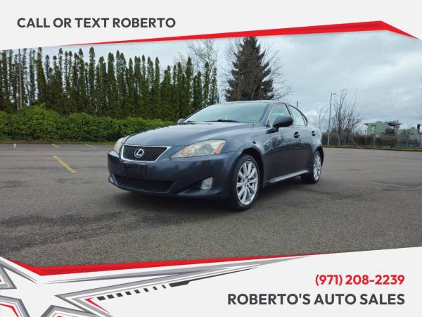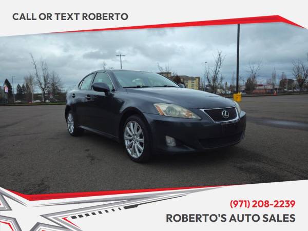 Roberto's Auto Sales have more than 25 yrs experience, serving the community with the vehicle's needs, we have EZ financing, all inventory has a clean title, we have car fax available, call or text me at 971-208-2239 for any questions. Introducing the luxurious and powerful 2008 Lexus IS 250 Base, now available for your driving pleasure. This stunning vehicle is equipped with a 2.5L V6 engine, delivering an impressive 204 horsepower and 185ft. lbs. of torque. With its 6-speed automatic transmission and sequential shift mode, this Lexus offers a smooth and seamless driving experience. Step into the spacious and elegantly designed interior, complete with comfortable leather seats and a state-of-the-art audio system. This 2008 Lexus IS 250 Base also features advanced safety features such as stability control and side airbags, ensuring your peace of mind on every journey. Don't miss your chance to own this exceptional vehicle, visit our dealership today for a test drive. Experience the ultimate combination of luxury, performance, and reliability with the 2008 Lexus IS 250 Base.