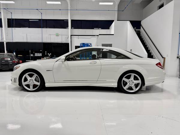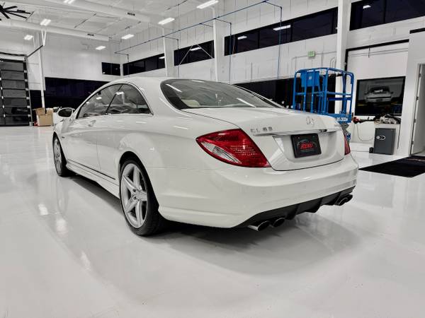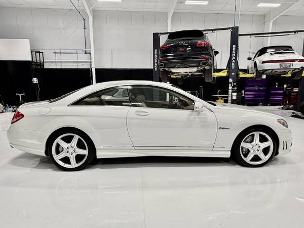 This 2008 Mercedes CL63 is finished in Calcite White over Cashmere and Savannah Beige leather interior. Power is provided by a naturally aspirated 6.2 liter V8 engine driving the rear wheels through an 7-speed automatic transmission.