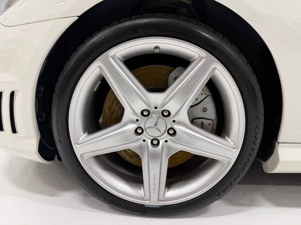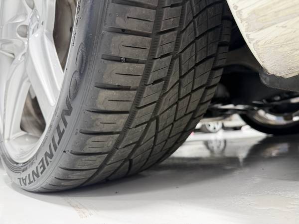 Factory 20″ AMG 5-spoke wheels are mounted with Continental tires matching front and rear. Stopping power is provided by 4 disc brakes with silver colored brake calipers and ABS.